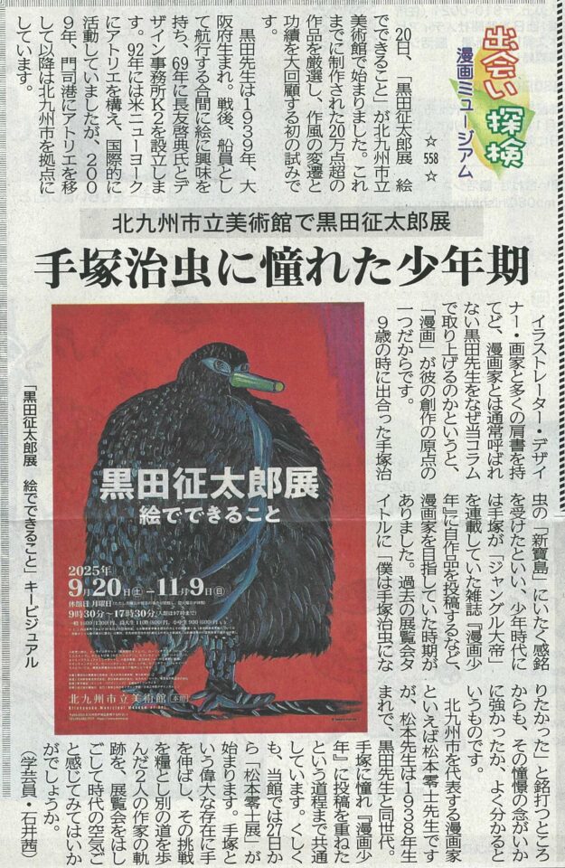 (558)北九州市立美術館で黒田征太郎展 手塚治虫に憧れた少年期