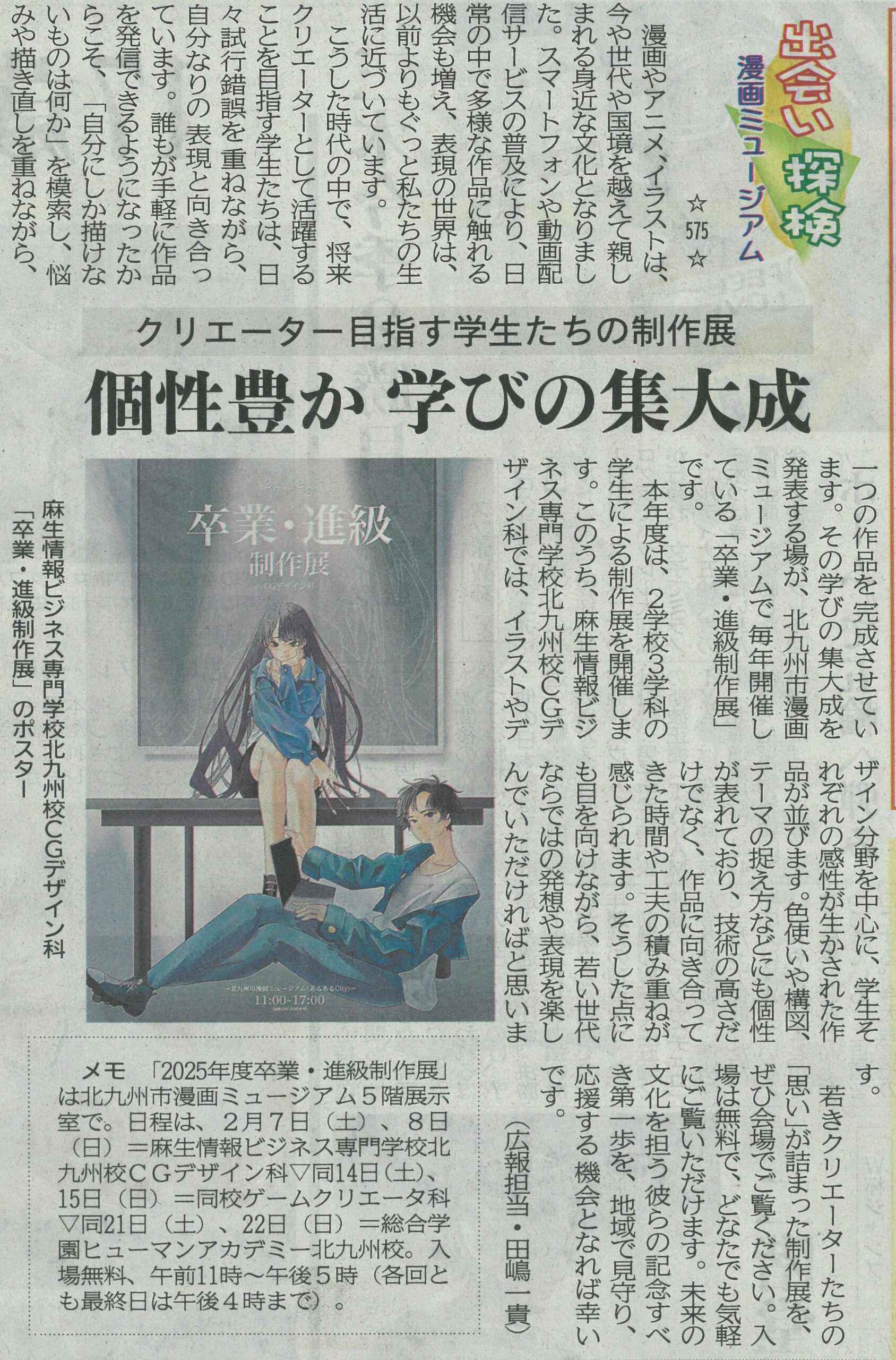 【メモ】「2025年度卒業・進級制作展」は北九州市漫画ミュージアム5階展示室で。
