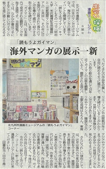 「読もうよガイマン」キャンペーンもその一つで、「明治大学 米沢嘉博記念図書館」と「京都国際マンガミュージアム」と共同し、その年に日本国内で出版された海外のマンガを集めて展示・紹介する取り組みを続けています。