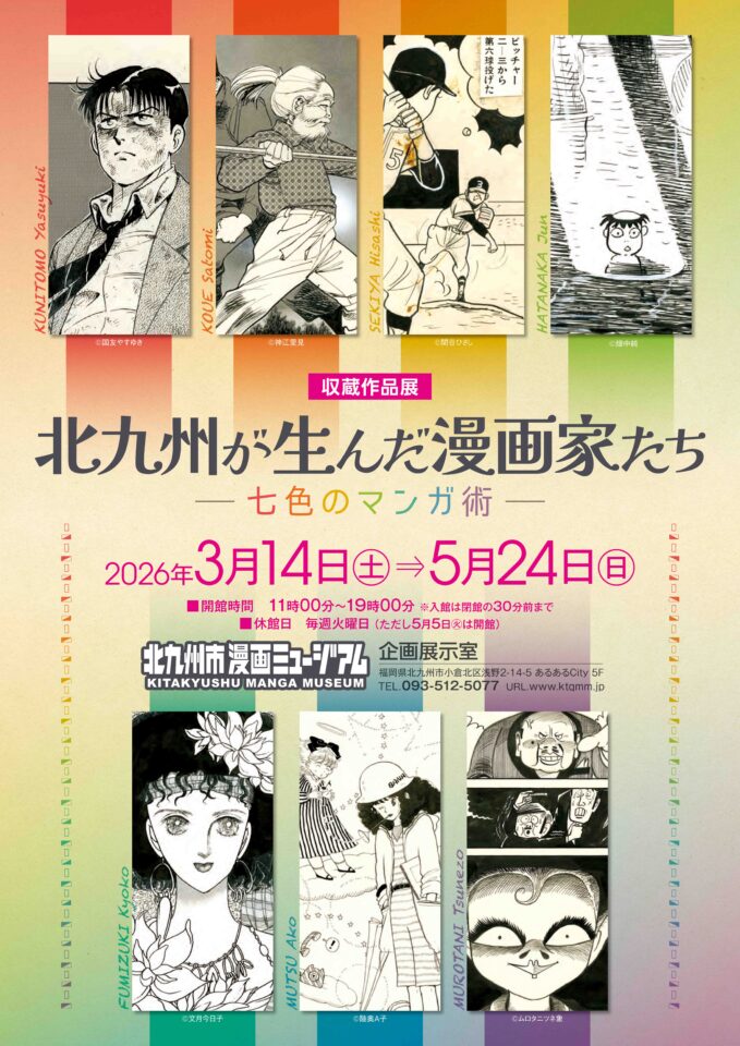 北九州市漫画ミュージアムでは、7名の北九州ゆかり作家(国友やすゆき・神江里見・関谷ひさし・畑中純・文月今日子・陸奥A子・ムロタニツネ象)の原稿・資料を寄託収蔵しています。現在では14万点を越えるコレクションになりましたが、これまで7作家を横断的に紹介する機会はありませんでした。